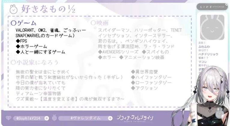 ソフィア・ヴァレンタインさんも初配信で好きなゲームにVALORANTを真っ先に挙げています。